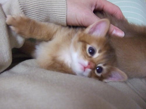 ミルちゃん、少し震えています。イヤイヤしながらも私に固定されましたが、