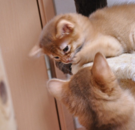 少し皆より成長が遅いけど、一番の甘えん坊で、いつも私に「にゃー」と一言。 ご飯頂戴、遊ぶ、寝る手が一番掛かりますが、本当に可愛いです。