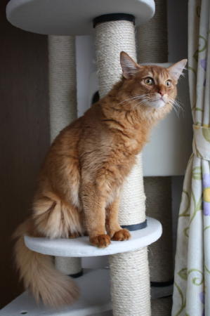 お気に入りのタワーですが、もっお気に入りはママの肩らしいです。