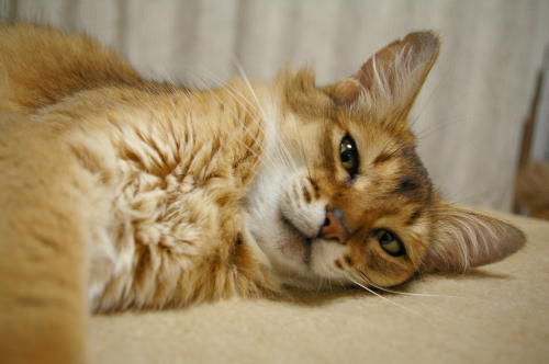 お客様が大好きで、お客様が来られると必ずお膝に寝ています。