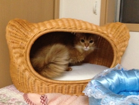 頂いたのはふじこちゃんのお母様のベット。なによりびっくりは、椅子カバー、ケージカバーと同じ色という偶然。きっとラッキーカラーですね。