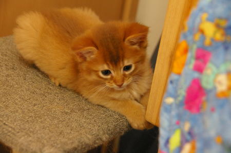 お気に入りのタワーですが、もっお気に入りはママの肩らしいです。