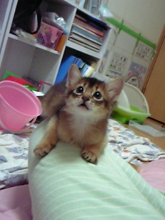 ミー君も眠たくなりました~ベッドにきたのね。可愛い~~