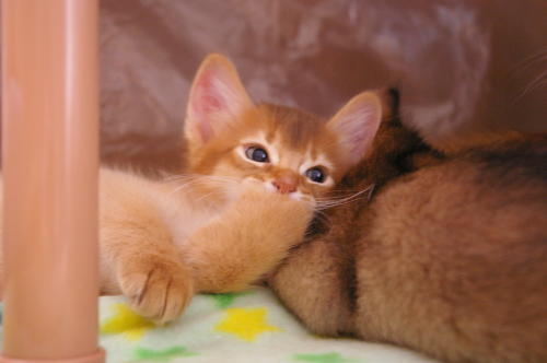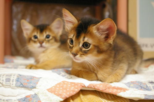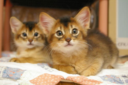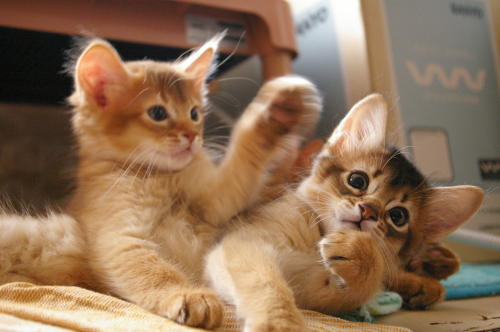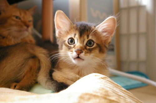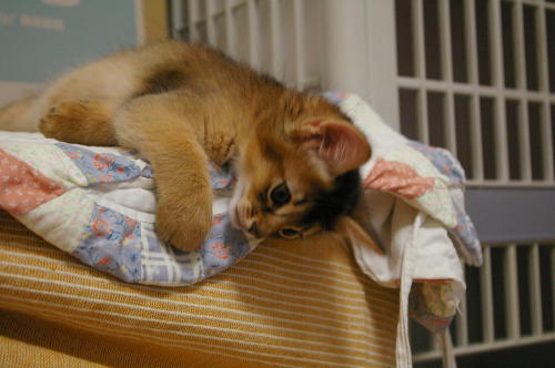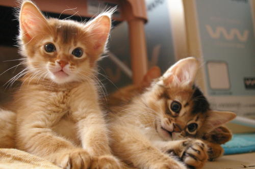 いつの間にか、ケージから箱の上にのり窓枠までたどりついた子猫たち。