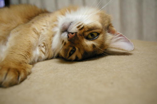お客様が大好きで、お客様が来られると必ずお膝に寝ています。