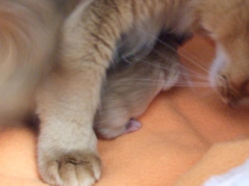 生まれた子猫を見て噛み付く勢いで大変だったのです。