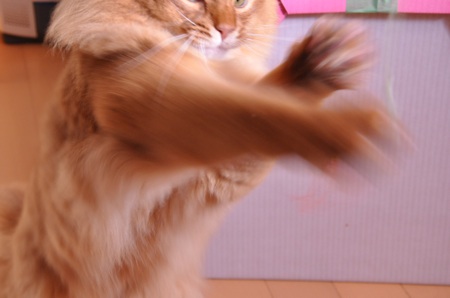 テラ君ショーでは猫じゃらしに余り反応しません。