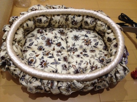 頂いたのはふじこちゃんのお母様のベット。なによりびっくりは、椅子カバー、ケージカバーと同じ色という偶然。きっとラッキーカラーですね。